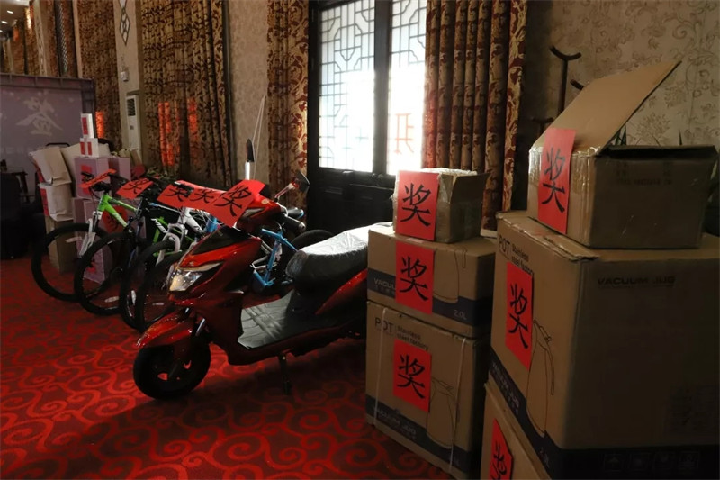晚會(huì)進(jìn)行期間,各種獎(jiǎng)項(xiàng)輪番上陣,驚喜不斷,電瓶車、自行車、磨毛四件套等大獎(jiǎng)的抽取,將晚會(huì)掀起了一個(gè)又一個(gè)高潮,現(xiàn)場(chǎng)處處洋溢著喜慶氛圍。