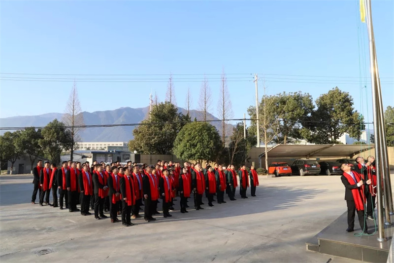 2019年1月27日8時(shí)08分,寧波科瑞特動(dòng)物藥業(yè)有限公司高層領(lǐng)導(dǎo)和全體員工在辦公樓前舉行升旗儀式。