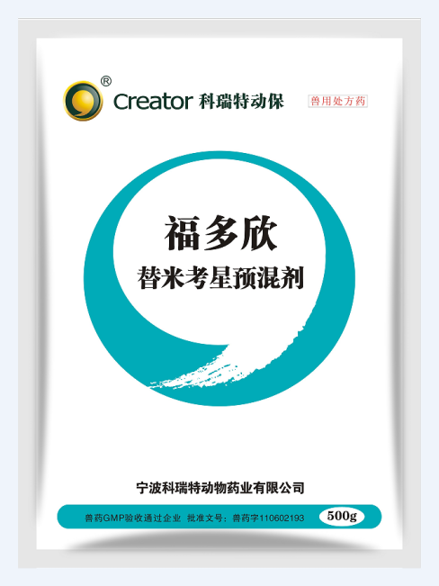 福多欣的主要成分為替米考星,屬于半合成大環(huán)內(nèi)酯類抗生素,其抗菌譜與泰樂菌素相似,而抗菌效力強(qiáng)于泰樂菌素。